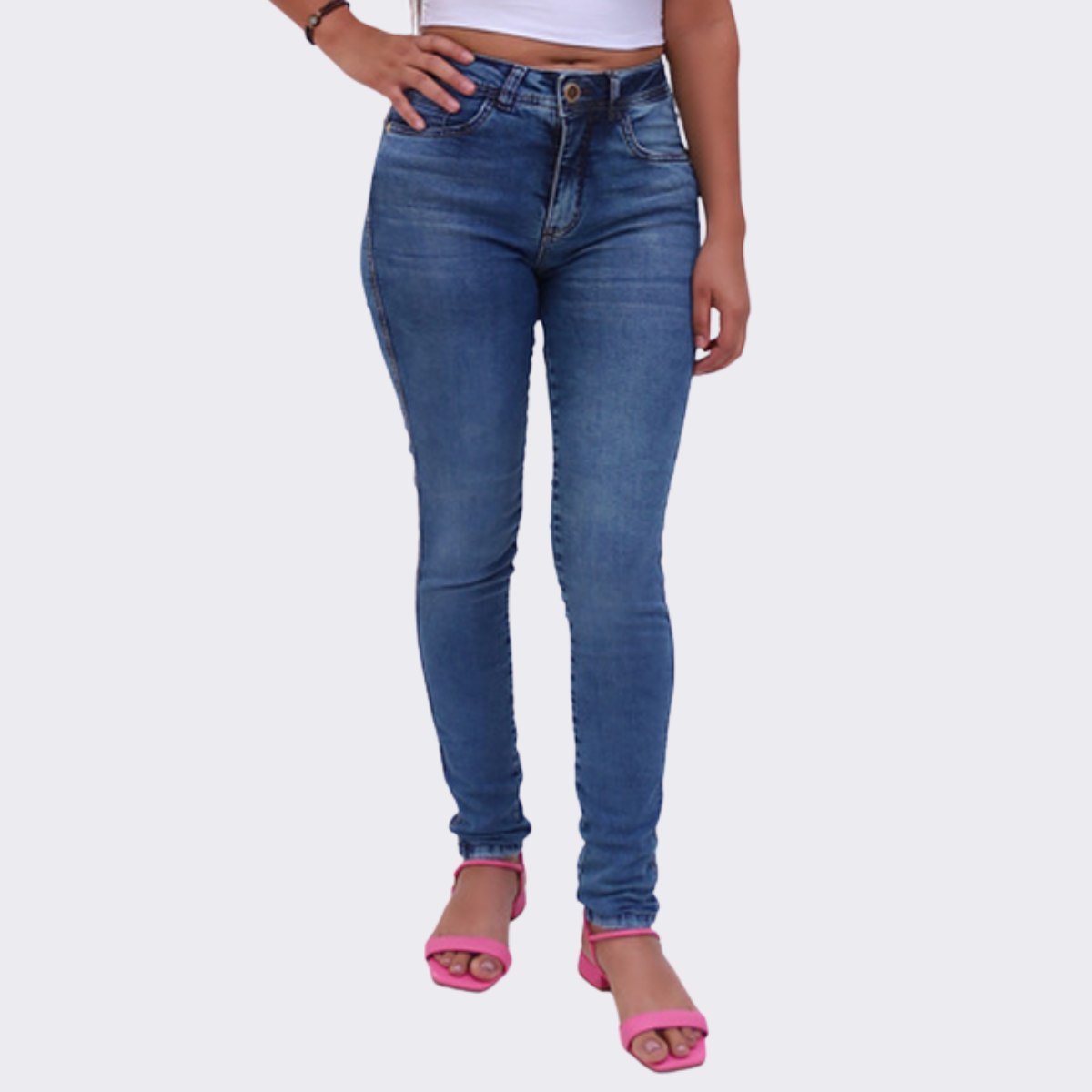 A Calça Feminina Jeans traz exclusividade e estilo marcante para o seu dia a dia. Confeccionada com 98% algodão e 2% elastano, proporciona um toque suave, ajuste confortável ao corpo e um design inovador, sendo a aposta perfeita para compor looks cheios de personalidade.